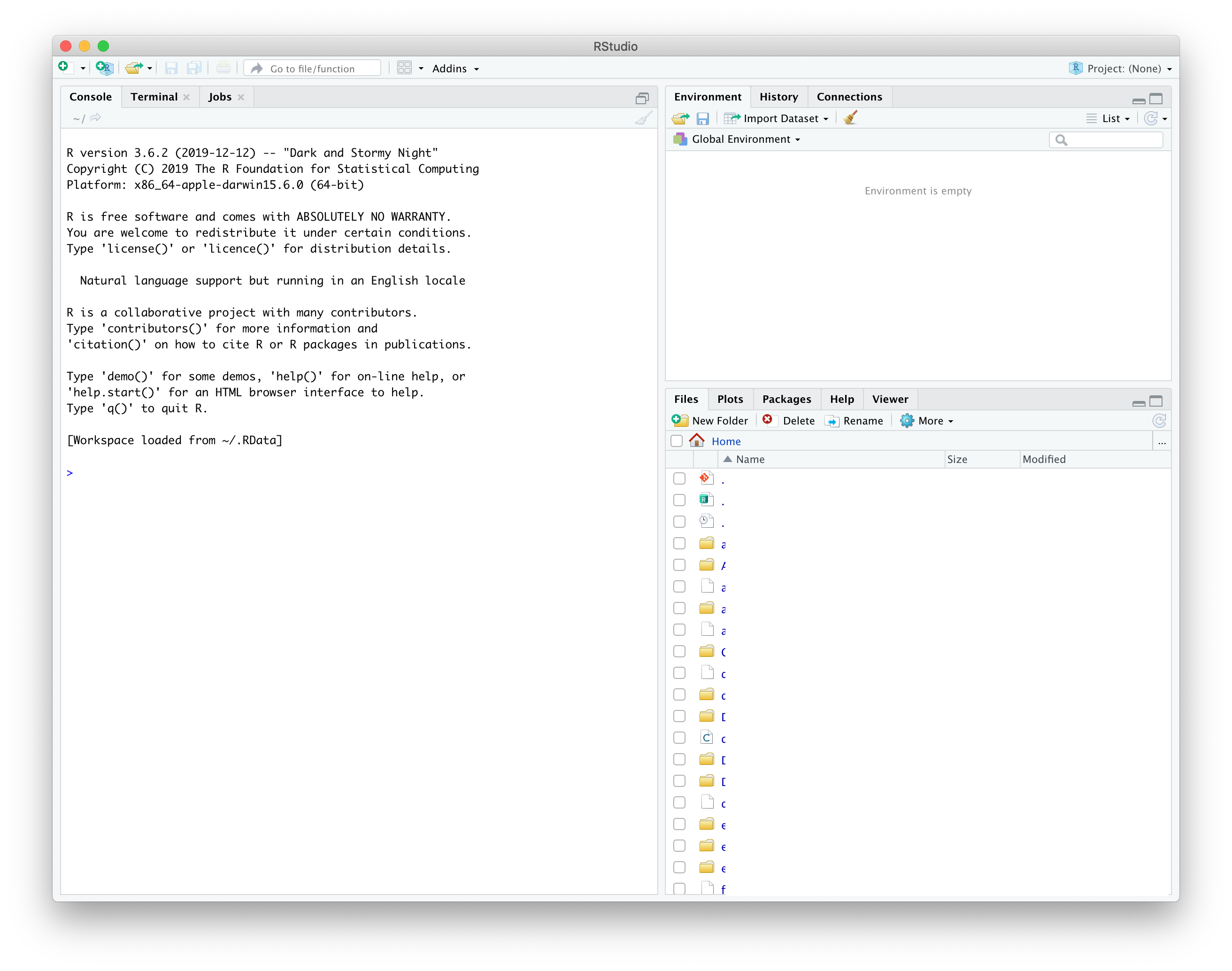 설치가 끝났으면 R을 켜보세요. 맥을 사용한다면 위와 같은 콘솔이 켜질텐데요. 보기도 불편하고 공부할 때 코드를 작성하기도 좋은 환경이 아닙니다. 따라서 R Studio 를 설치해야 합니다.