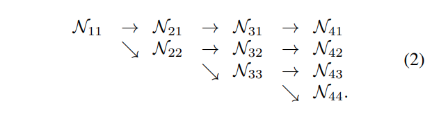 Sequential multi-resolution subnetworks. 포즈 추정을 위한 기존 네트워크는 고해상도부터 저분해능 하위 네트워크를 직렬로 연결하여 구축되며, 각 하위 네트워크는 일련의 컨볼루션으로 구성되며, 분해능을 절반으로 줄이기 위해 인접 하위 네트워크에 걸쳐 다운샘플 레이어가 있습니다. Nsr을 sh 단계에서 하위 네트워크가 되고 rb 해상도 인덱스가 되도록 합니다(해상은 첫 번째 하위 네트워크 해상도의 12r-1). S(예: 4) 단계가 있는 하이 투 로우 네트워크는 다음과 같이 나타낼 수 있습니다.