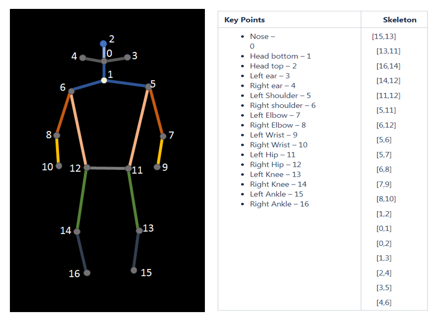 | 2 | Right Hip | Head Top | 14, 2 | Right Eye |