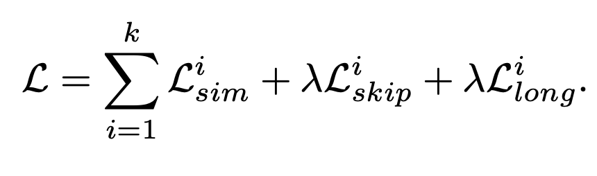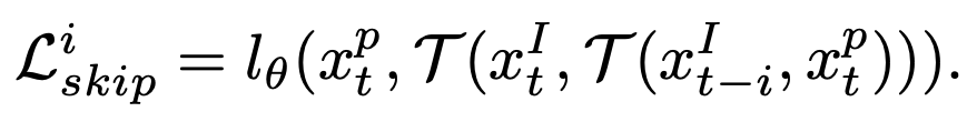 Skip Cycle - 연속된 프레임을 통한 사이클뿐만 아니라 시간 경과를 건너뛸 수도 있습니다. two-step skip-cycle에서 손실을 $L^i_{skip}$으로 정의합니다.