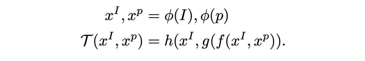 T를 미분 가능한 연산 $x^I_s \times x^p_t \mapsto x^p_s$ 로 합니다. 여기서 s와 t는 시간 단계를 나타냅니다. T의 역할은 $x^p_t$와 가장 유사한 이미지 feature $x^I_s$에서 패치 feature $x^p_s$를 로컬라이징하는 것입니다. T를 앞으로 t−i to t−1에서 반복적으로 적용할 수 있습니다.