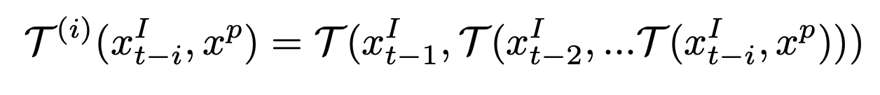 By convention, the tracker T can be applied backwards i times from time t−1 to t−i:
